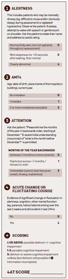 • Clinical decision tools (e.g., 4AT score and interpretation) to anchor your exam in a validated framework