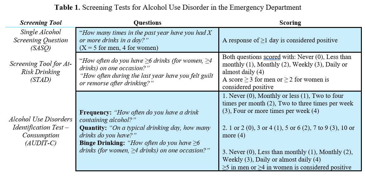 Alcohol Use Disorder: Screening Tools and Medications in the ED