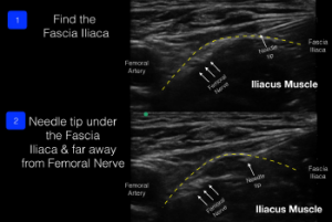 No Responses to “Figure 3: The block needle enters from lateral to medial and deposits anesthetic under the fascia iliaca (away from the femoral nerve and artery).”