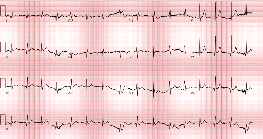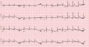 Figure 3: An ECG obtained with modified “high” lead placement confirming Brugada syndrome. (Click to enlarge.)