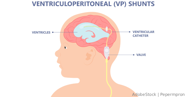 A 3-year-old girl with a history of prematurity, hydrocephalus status post ventriculoperitoneal (VP) shunt at four months, and developmental delay was brought to the emergency department (ED) for one day of fever, abdominal pain, vomiting, and lethargy. Vital signs were T 98.2°F, HR 64, RR 19, weight 9.98 kg, SpO₂ 100%. The exam documented an alert, awake child in mild distress who was “averbal at baseline,” a palpable right-sided shunt, no meningismus, a soft non-tender abdomen, and “appropriate for age” interaction with normal strength and tone.