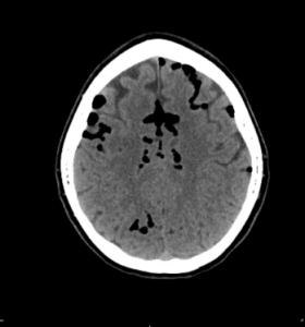 Figures 1 (ABOVE) and 2 (BELOW): CT scan with large-volume atraumatic pneumocephalus.