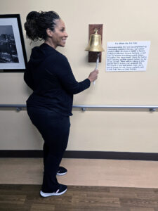 I was prepared to cancel my mission trip to Malawi, but with the blessing of my radiation oncologist, I was able to reschedule my radiation therapy. Unfortunately, my treatments were scheduled to coincide with my first classes at Georgetown. The radiation was scheduled at 7:45 a.m., every weekday for three and a half weeks. I would wake up, drive to my radiation treatment, and on class days, immediately drive one and a half hours to campus. On workdays, I would go home to nap and then work my shift. It was exhausting. In mid-September, I completed my radiation treatments and rang the bell.