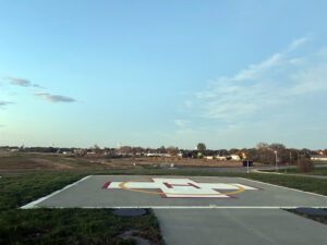 A landing pad near the health center allows for small plane landings and takeoffs to transport patients to larger health care facilities. (Click to enlarge.)