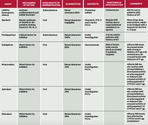 Table 1: Options for Outpatient Anticoagulation in Patients with DVT.1,9