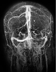 MRI of the 52-year-old female patient with cerebral venous sinus thrombosis.