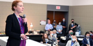 Sarah Keene, MD, addresses the crowd during the Emergency Medicine Foundation’s Awards Showcase during ACEP21 in Boston.