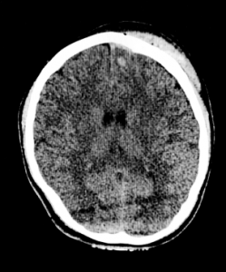 CT scan of subdural hematoma and intracranial hemorrhage.