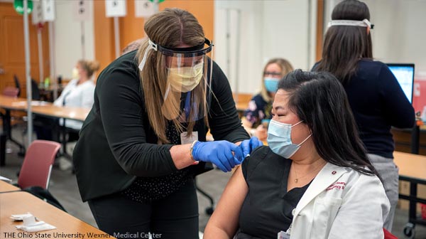 The Ohio State University emergency physicians receive COVID-19 vaccinations at the clinic.